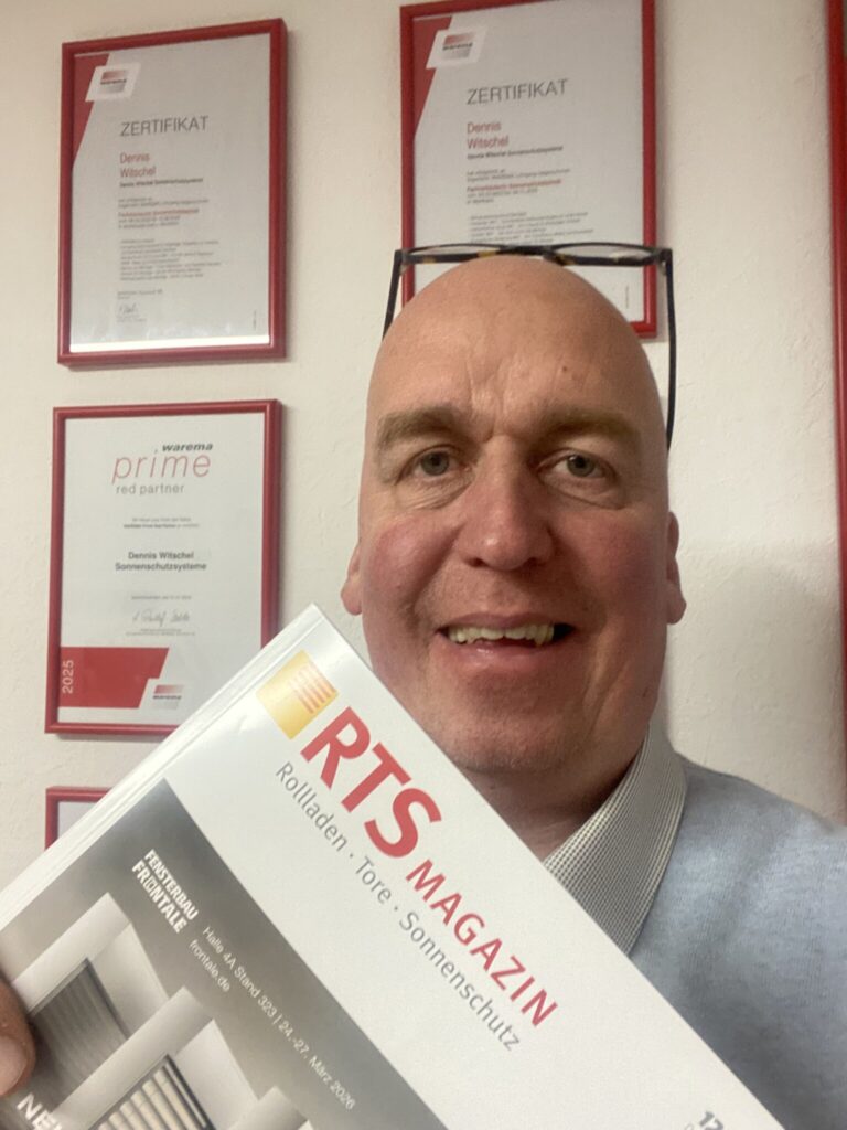 Im aktuellen RTS-Magazin (12/2025) berichtet Dennis Witschel, langjähriger Warema Fachhändler, über seine Erfahrungen mit den Schulungen der Sun Academy und erklärt, warum Weiterbildung für Qualität, Sicherheit und Kundenzufriedenheit unverzichtbar ist.